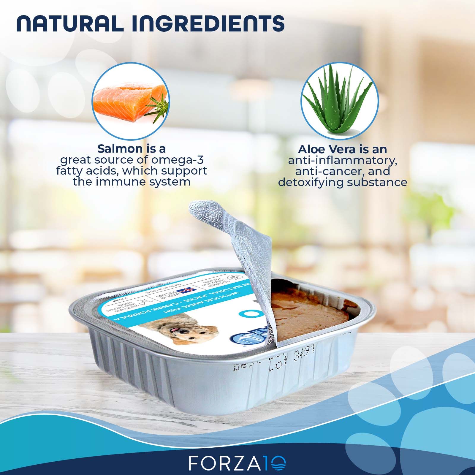 Water sufficient for processing, salmon, chicken liver, lamb, rice, minerals (dicalcium phosphate, calcium carbonate, salt, zinc sulfate, manganese sulfate, potassium iodine), cassia gum, guar gum, locust bean gum, xanthan gum, vitamins (vitamin D3 supplement, vitamin E supplement, thiamine mononitrate, pyridoxine hydrochloride, biotin, folic acid), taurine, vegetable oil, aloe vera extract.
