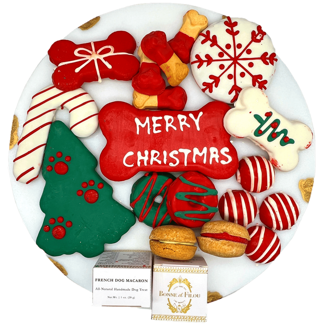 Inspired by the lavish lifestyles of French King Louis XIV’s dogs, Bonne and Filou (who lived in the Palace of Versailles with their own dog chef), we bring you the Bonne et Filou Christmas Box.