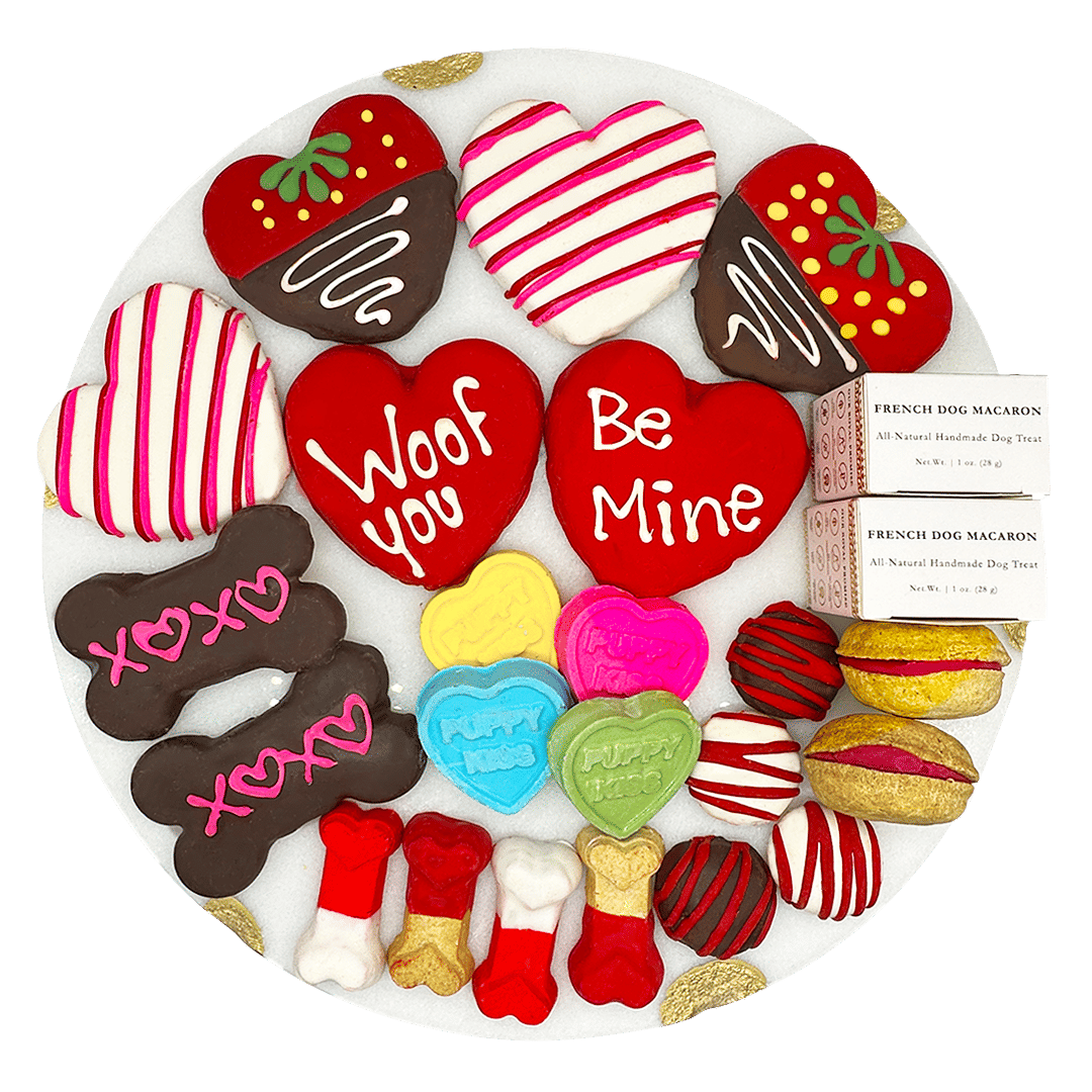 - Includes 22 themed treats including various sized hearts, dog bones, macarons, and truffles, etc.
