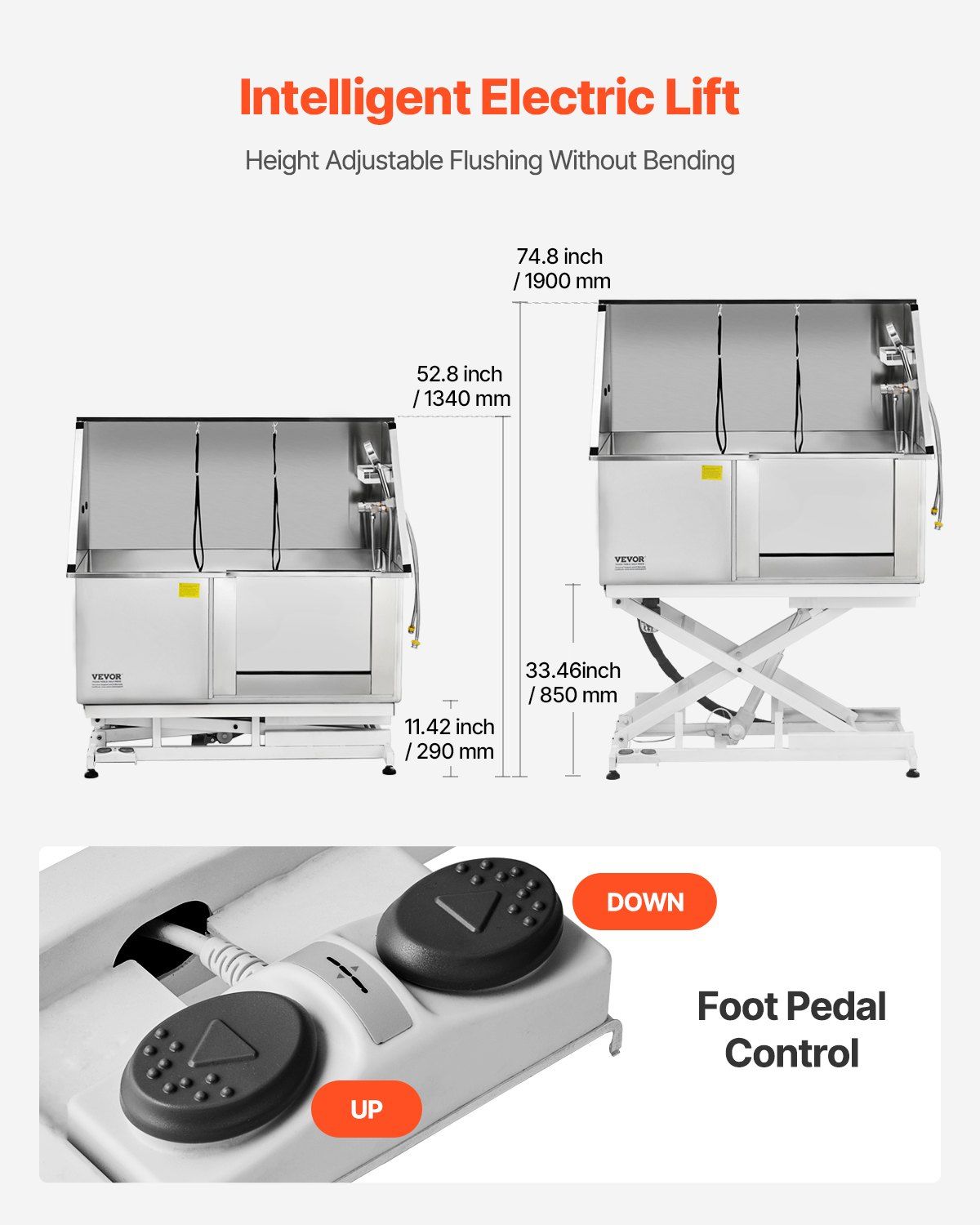 Home > VEVOR Electric Lift Dog Washing Station, 50Inch Professional Stainless Steel Pet Grooming Tub w/ Non-Slip Drain Board